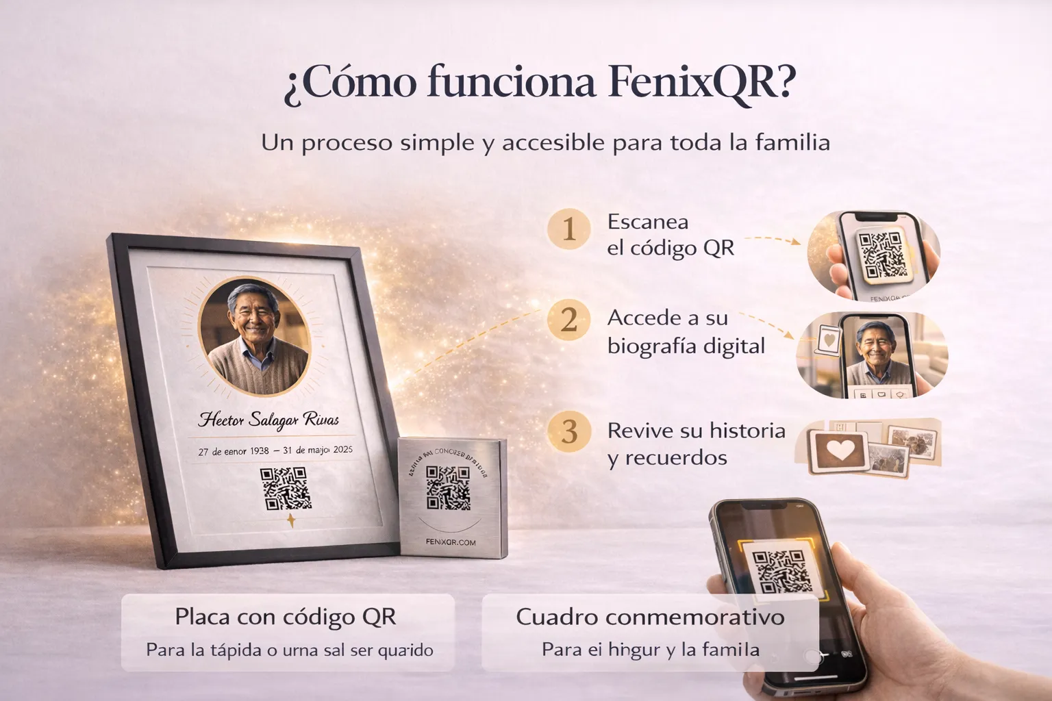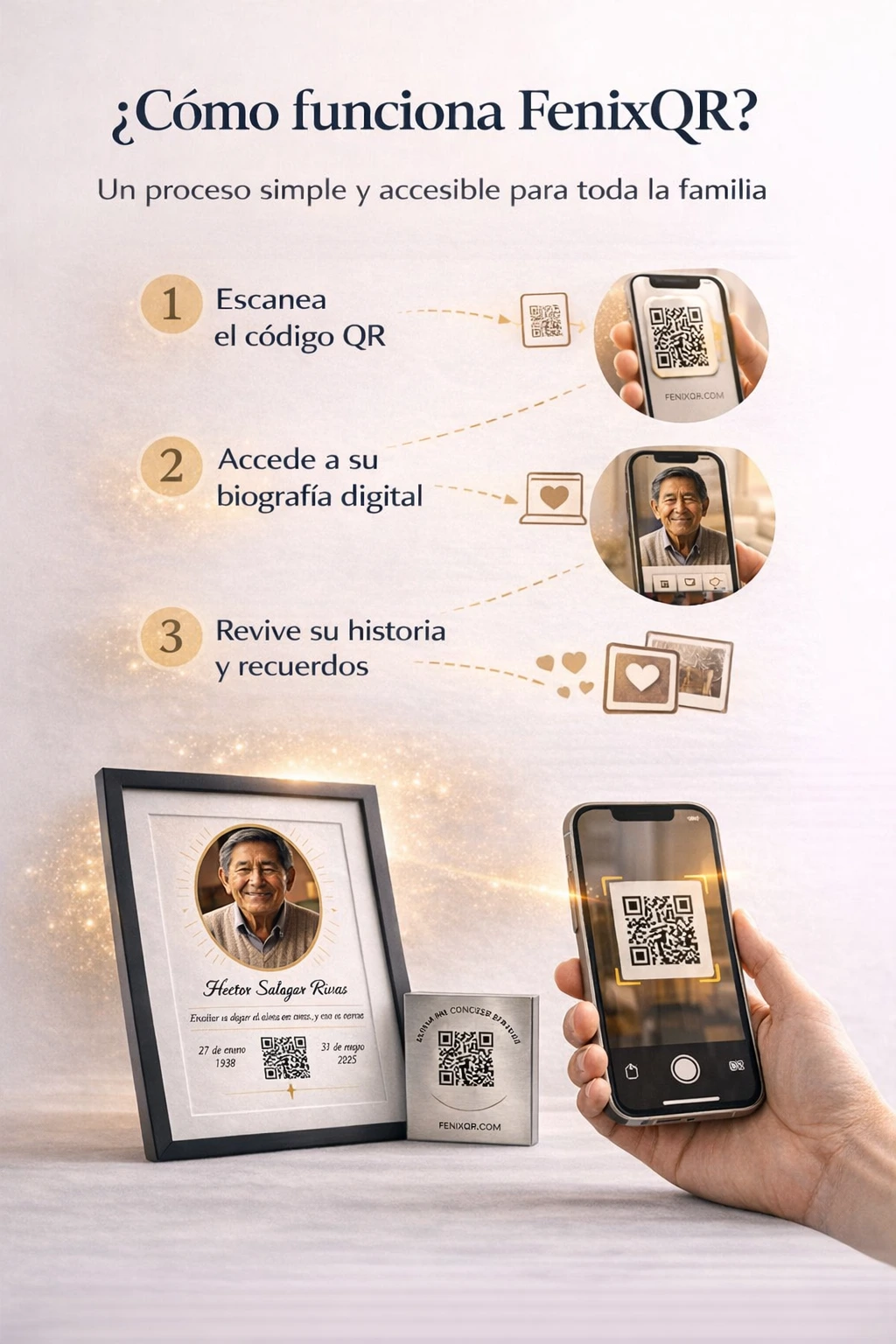 FenixQR es una plataforma diseñada para registrar y organizar información, imágenes y contenido multimedia en un espacio digital accesible mediante QR.